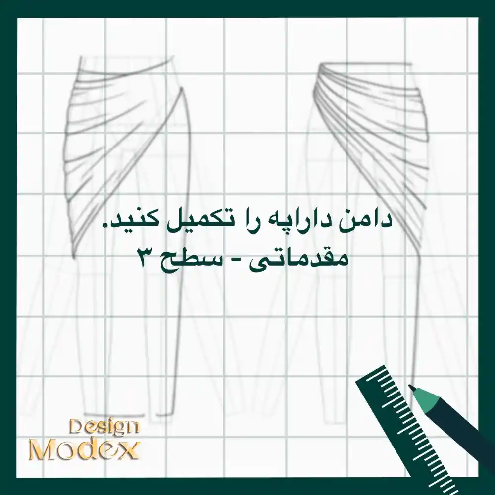 کاربرگ ترسیم دامن دراپه مقدماتی سطح سه P01T003L13